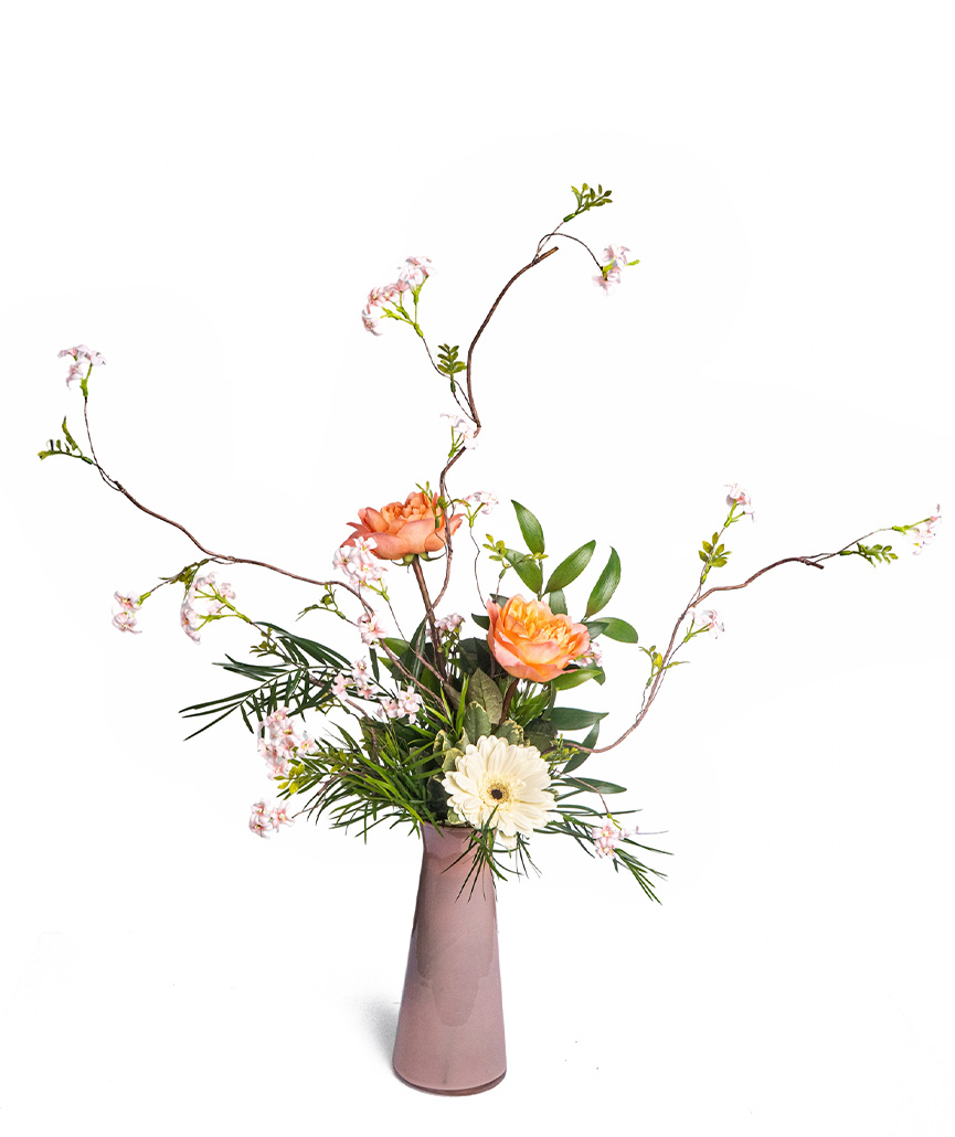Permanent flowering branches give this arrangement an airy, whimsical feel, adding height, movement, and a touch of lasting beauty. Their delicate blooms create a light, graceful look that brings a sense of spring and elegance to any space.